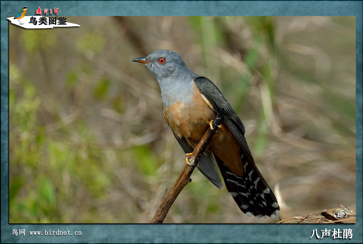 | 中 名 | 八声杜鹃 | 学 名 | Cacomantis merulinus | 目 | 鹃形目 | 科 | 鸊鷉科 |