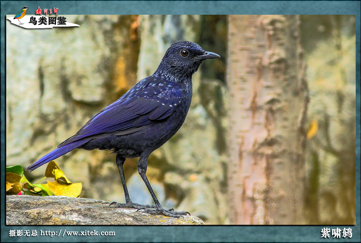 体长约30cm,通体黑色,上体、胸部及尾羽具辉蓝色光泽。尾长为深凹形,最外侧一对尾羽向外上方卷曲 |