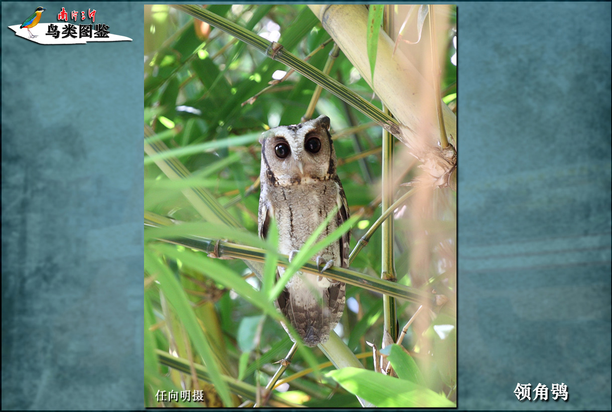| 中 名 | 领角鸮(xiāo) | 学 名 | Otus bakkamoena | 目 | 鸮形目 | 科 | 鸱(chī)鸮科 |