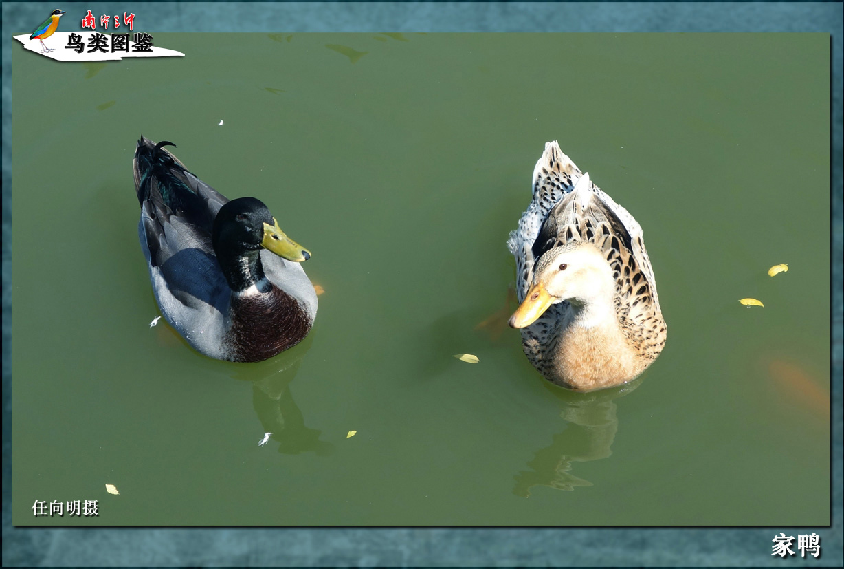 | 中 名 | 家鸭 | 学 名 | Anas platyrhynchos domestica | 目 | 雁形目 | 科 | 鸭科 |